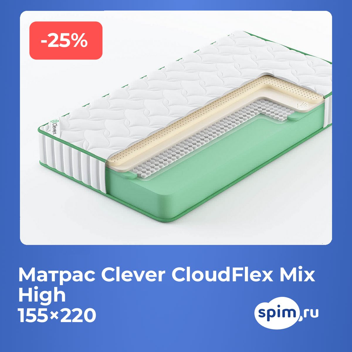 О производителеБренд Clever с 2014 года предлагает матрасы, созданные на основе современных технологий и качественных материалов. Коллекция Cloud — это сочетание инновационных решений, надежности и комфорта для ежедневного использования.