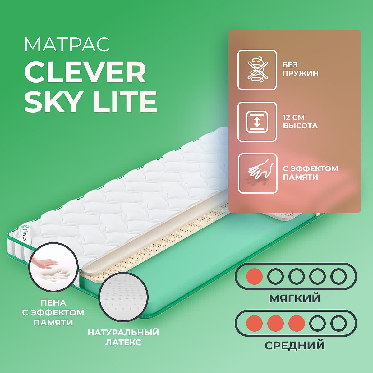 О производителеБренд Clever появился на российском рынке в 2014 году и производит матрасы в Щёлково. В основе коллекций — качественные материалы и современные технологии для практичного ежедневного использования.