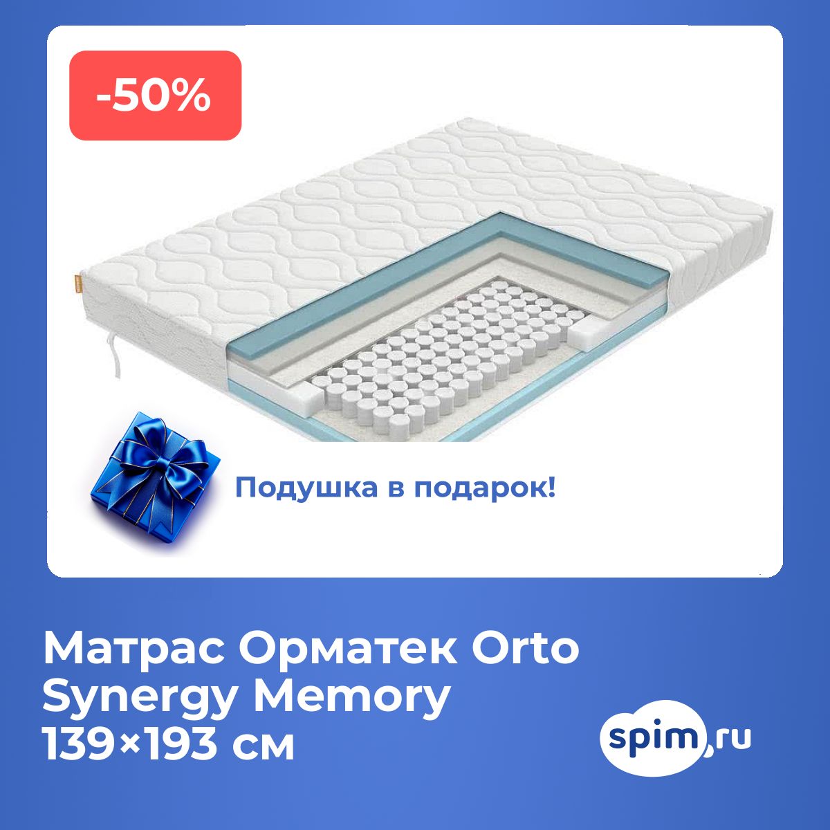 Подушка Орма Sleep в подарок при покупке матраса стоимостью от 15,000 рублей.