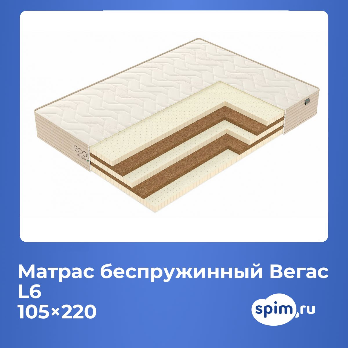 Кокос — натуральный материал, койра отлично дышит, придает матрасу «L6» жесткость и упругость.