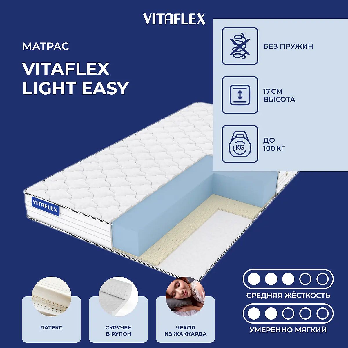 Матрас Light Easy рассчитан на нагрузку не более 100 кг на одно спальное место.